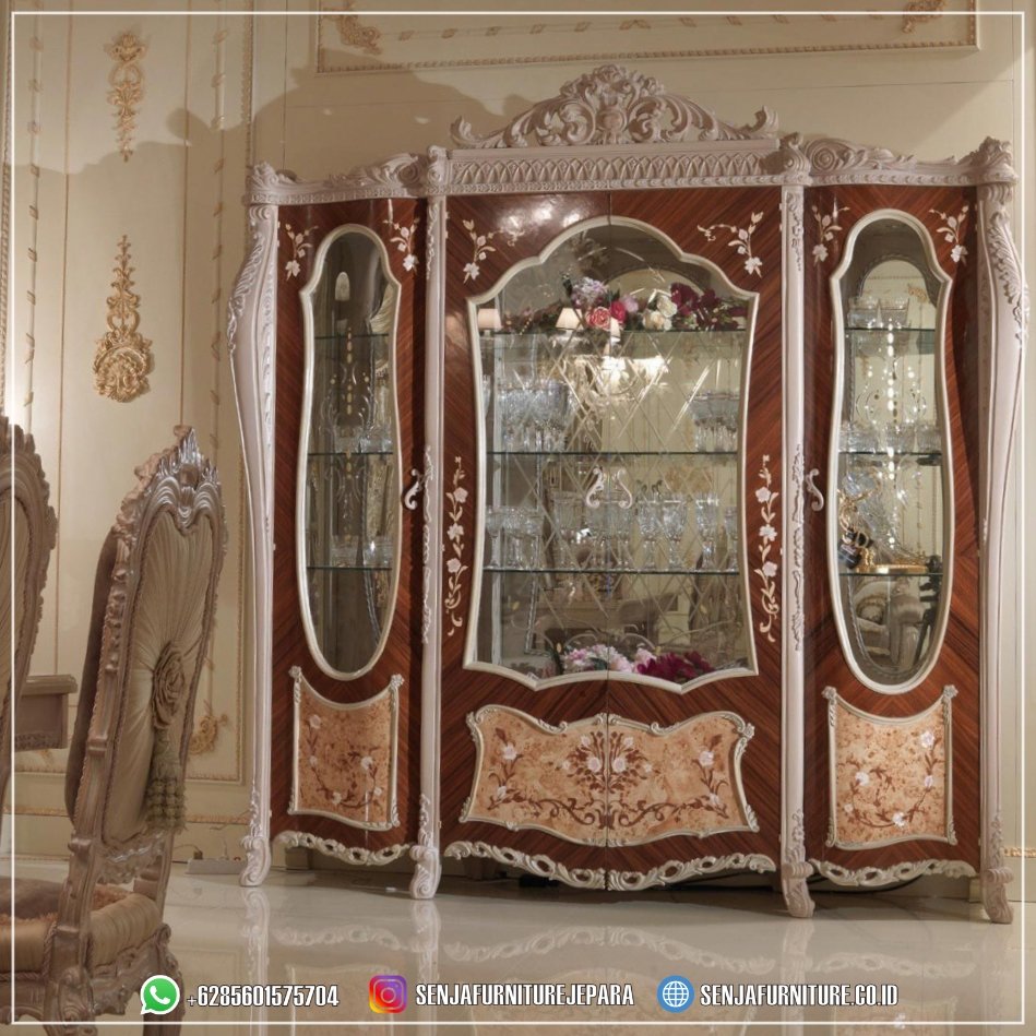 Aksen Veneer Lemari Hias Mewah Pintu Kaca Klasik Eropa