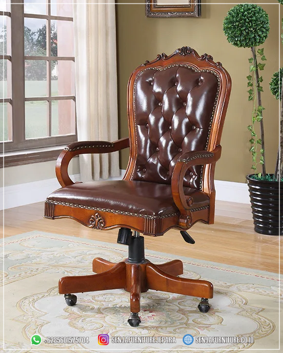 Furniture Kursi Kerja Kulit Klasik Leather Chair Brown