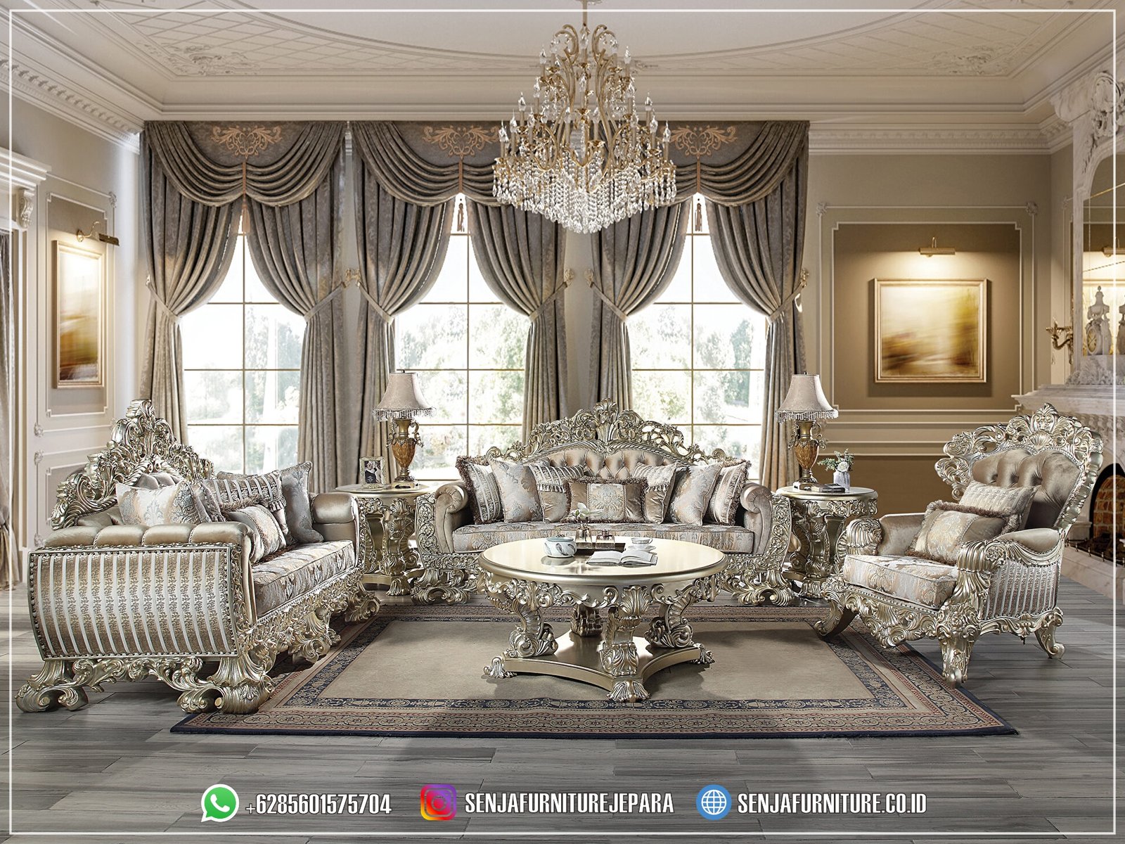 Ide Sofa Tamu Mewah Klasik Champagne Ruangan Besar